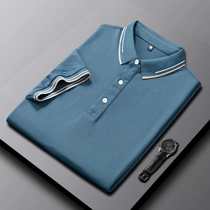 Knitted with a breathable weave for a light, airy feel, this polo delivers comfort. The textured finish adds depth, while a classic color palette keeps it sharp and versatile. A subtle contrast at the collar and cuffs sets it apart—built to keep you cool and comfortable no matter the occasion.