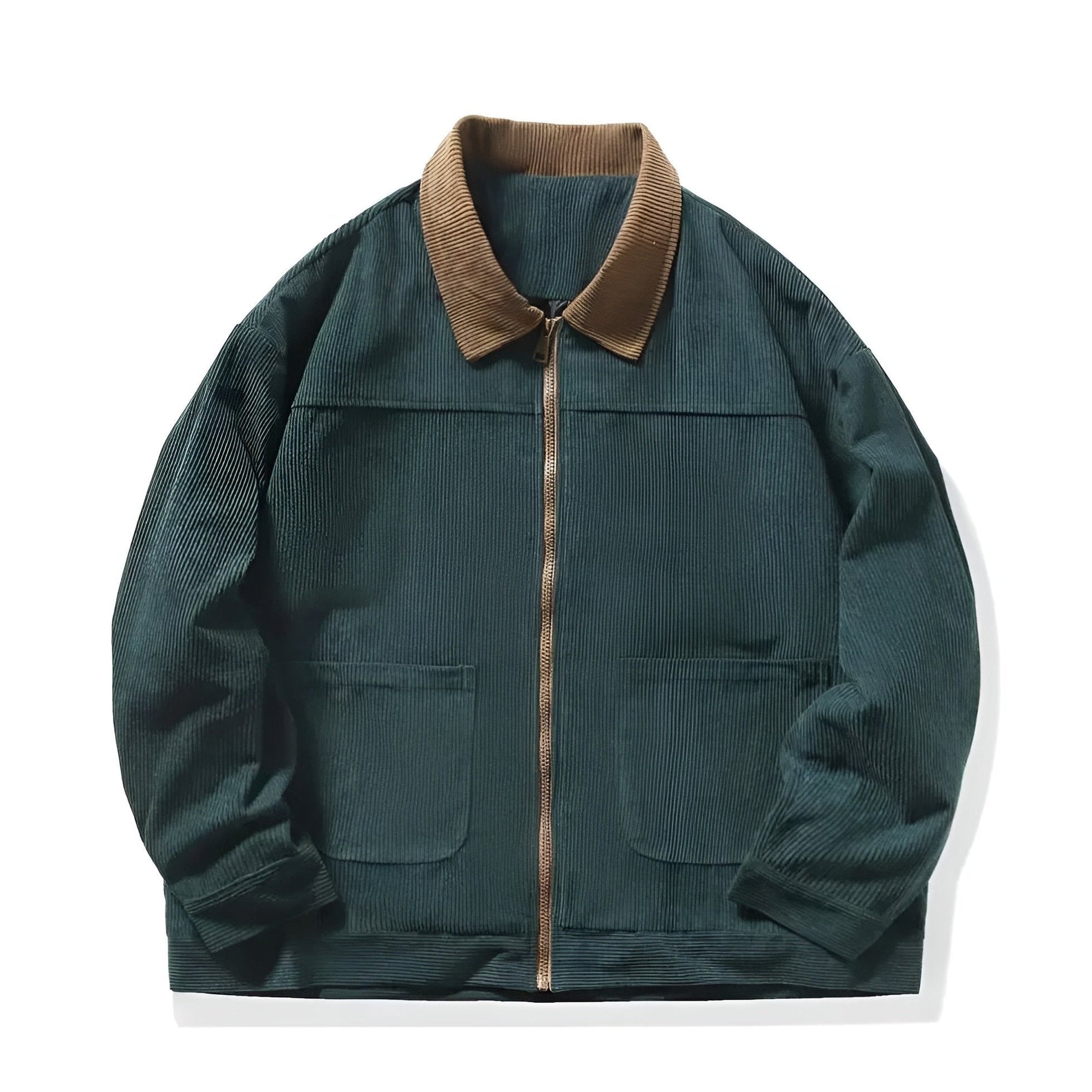 Crafted from soft corduroy, the jacket feels great to the touch while maintaining durability for daily wear. Its earthy color-block tones create a refined yet natural look, making it the ultimate layering piece for cooler days.