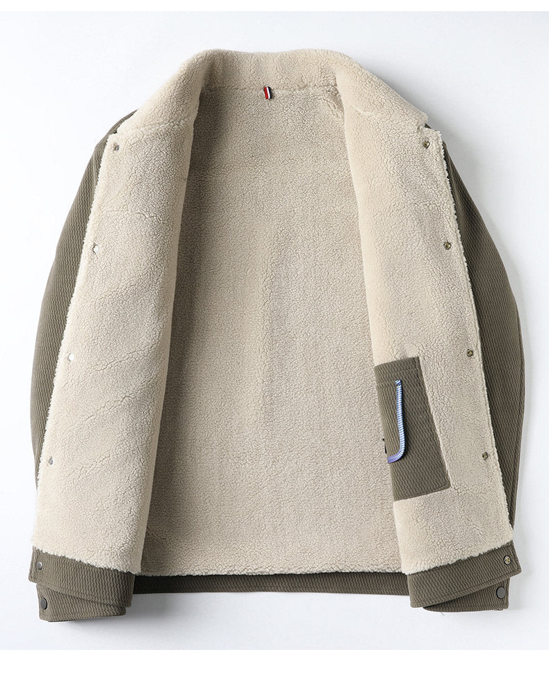 Men’s Sherpa-Lined Jacket – Textured Wool Look – Snap Button Closure – Warm Winter Layer
